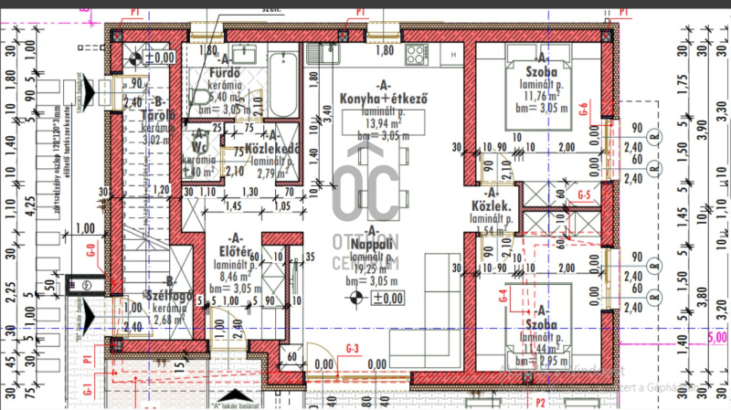 - 75,98 m² nettó lakótér,14 m² terasz (3,05 m belmagasság!)