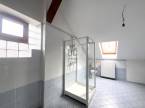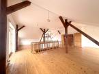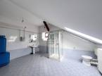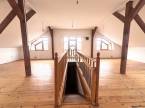 A tetőtér szintén fa mennyezettel és látszógerendákkal készült, mely meleg, otthonos hangulatot áraszt, és rengeteg lehetőséget kínál kreatív belsőépítészeti megoldásokra.