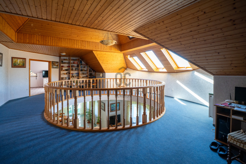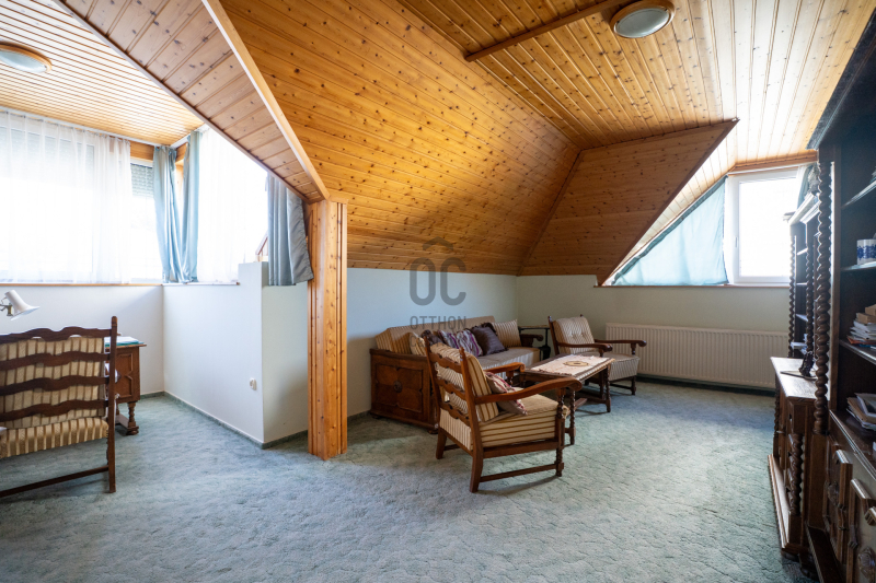 -a tetőtérben 4 hálószoba és két fürdőszoba található, valamint egy nagy társalgó