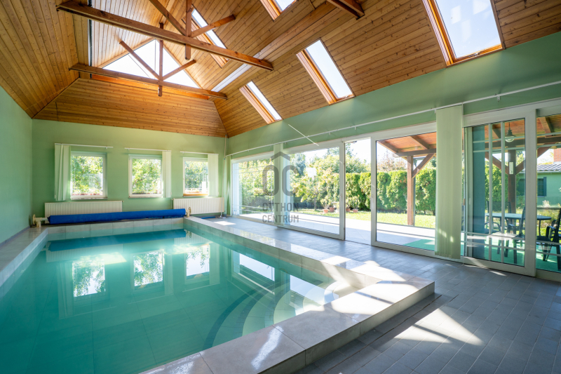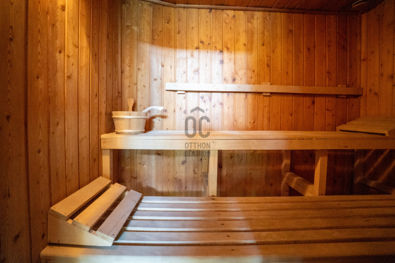 -a földszinten egy 60m3-es medence, illetve egy finn szauna került kialakításra
