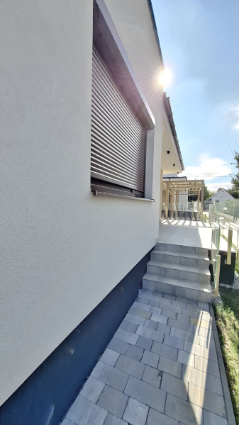 - a lakóépületbe, 3 rétegű, hőszigetelt üvegezésű ablakok és hőszigetelt, szinterezett, alumínium redőnyök lettek beépítve