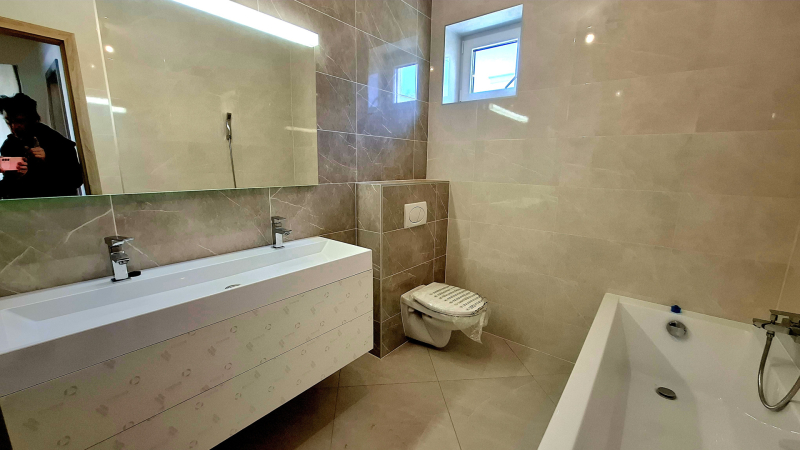 A fürdőszobában kialakításra kerül a kádon, vagy a zuhanyzón és a mosdón felül egy toalett is, de egy külön helyiségben is lesz még egy, a megnövekedett komfort igények miatt!