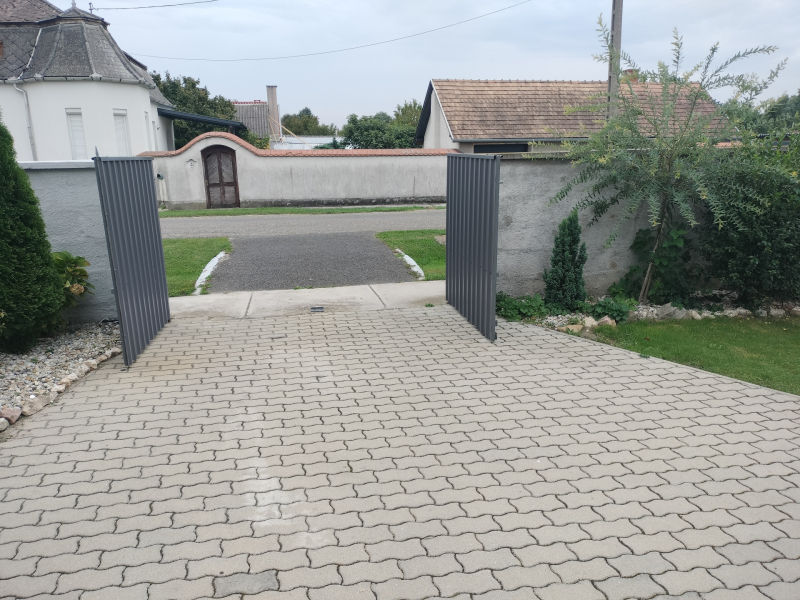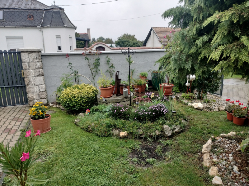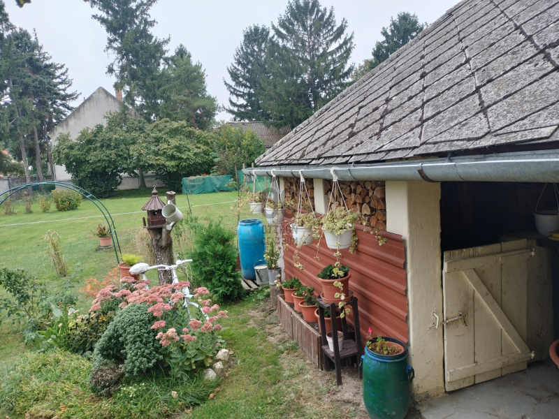 Az ingatlanhoz tartozik egy önálló, nagy méretű garázs, valamint egy fedett autóbeálló is. Az öntözést esővízgyűjtő segíti.