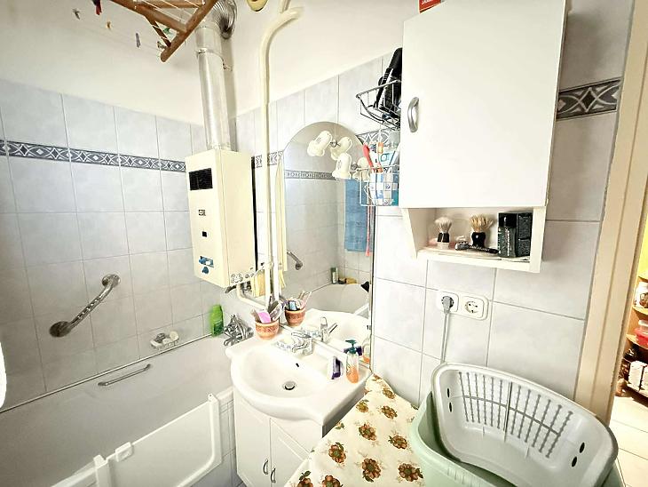 A fürdőszobában található egy FÉG gázos átfolyós vízmelegítő és egy parapetes konvektor. A nyílászárók műanyag thermo üvegesek. A lakás 70%-ban rézvezetékek kerültek beépítésre. A nappaliból kijutunk egy 4,3m2-es loggiára.