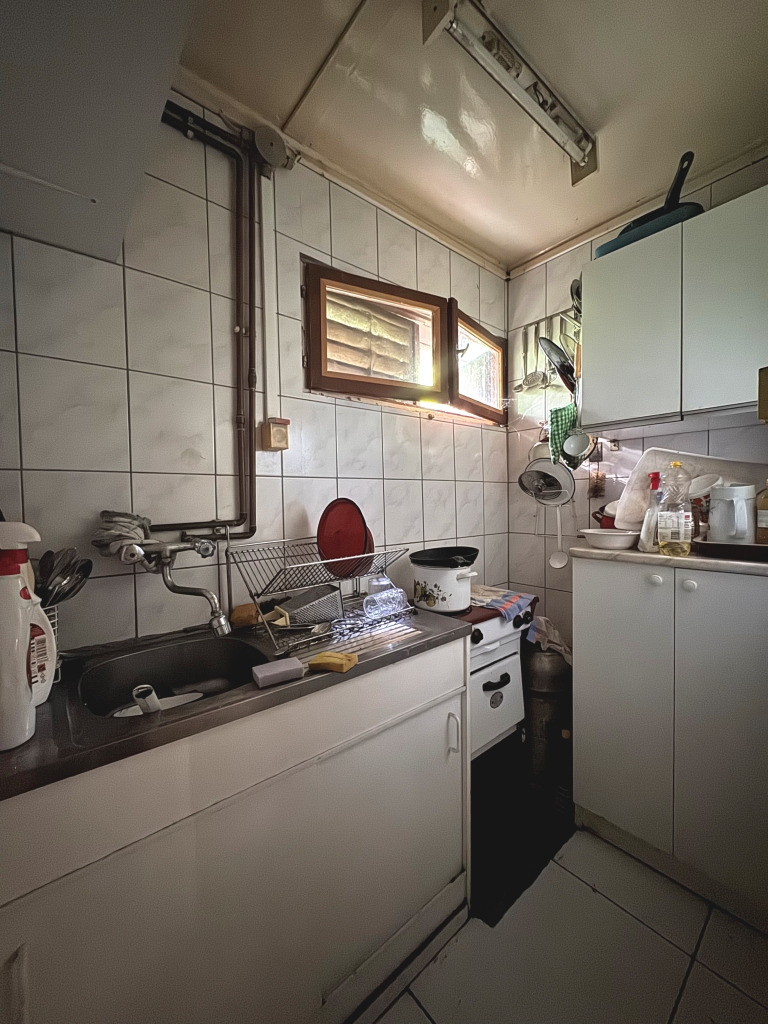 A földszint szintén 23m2, előtér, szoba, főzőfülke, fürdőszoba WC-vel került kialakításra.