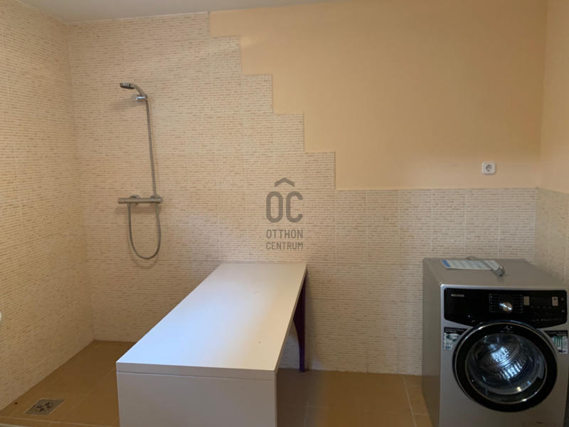 A földszinten az előszobából nyílik egy mosdó-kézmosóval, szép nagy üvegportálos nappali-étkező-konyha és egy kertkapcsolatos, kertre néző terasz van.