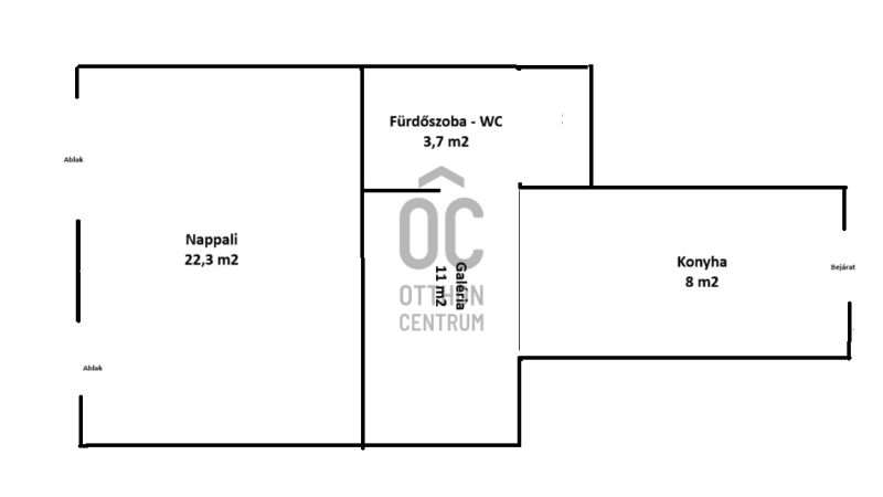 A lakás praktikus elosztású: a 34 m² alapterületet egy 11 m²-es galéria egészíti ki, így a nappali akár vendégfogadásra is alkalmas.