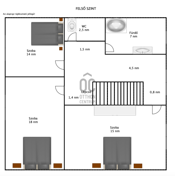 - továbbá egy kis dolgozó szoba és egy tusolós fürdőszoba-WC is található ezen a szinten
