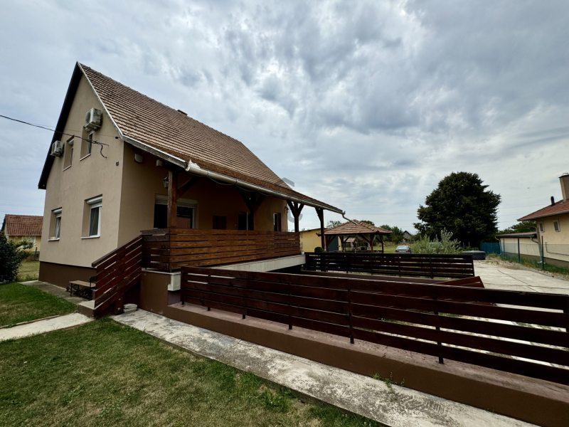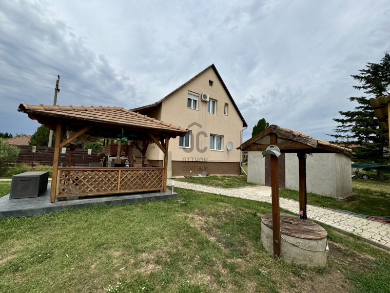 - tároló, 2 beállásos garázs szerelőaknával, fedett terasz, fedett sütögető-bográcsozó és egy óriás telek lehetőségekkel