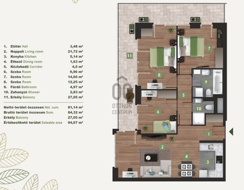 A gyönyörű kilátás nyugalma a városi nyüzsgés harmóniájával. A Berry’s minden lakásához tartozik loggia, erkély, vagy terasz!