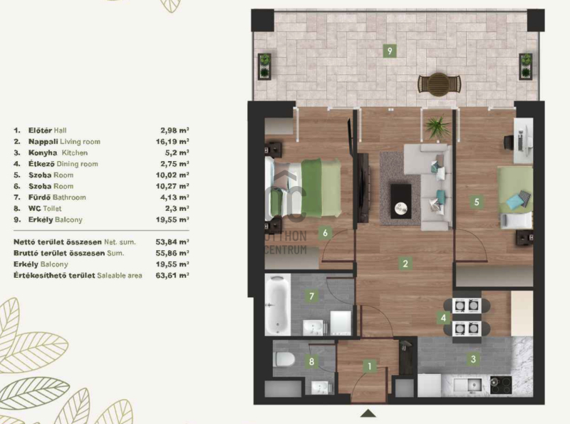A gyönyörű kilátás nyugalma a városi nyüzsgés harmóniájával. A Berry’s minden lakásához tartozik loggia, erkély, vagy terasz!