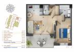 - Felosztása: előtér, amerikai konyhás nappali és étkező, hálószoba, fürdőszoba, WC, erkély.