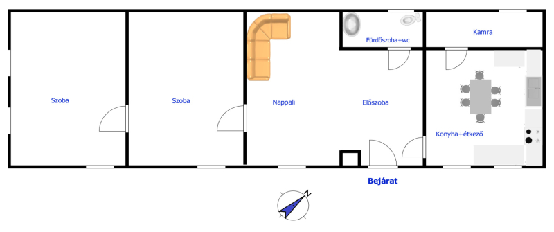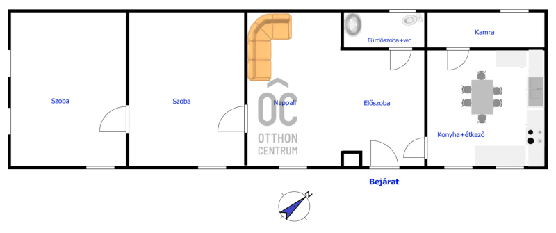- 3 szoba található benne DNY-i fekvésű nappalival
