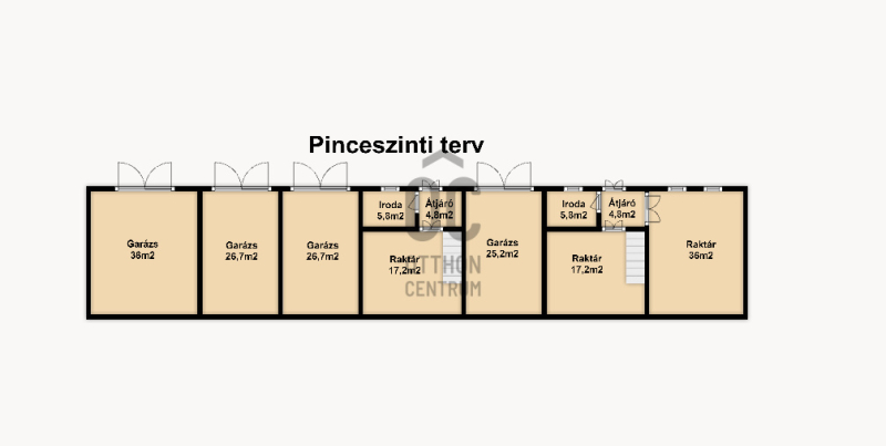 - Az alagsori részen négy darab garázs, továbbá három raktárhelyiség.
