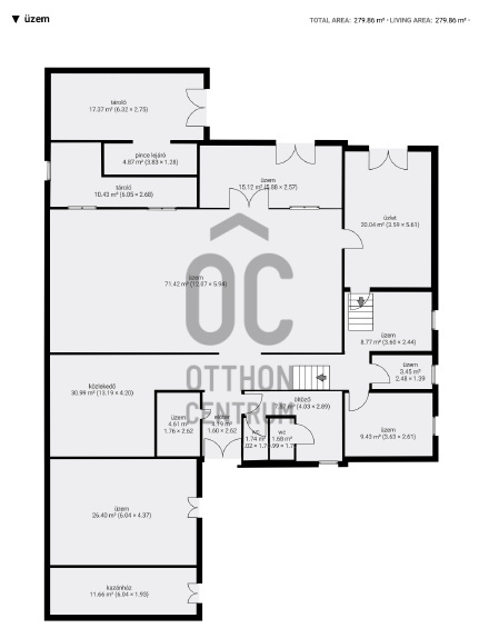 •Üzemi épület: 250 m² (Tároló + pince: 85 m²)