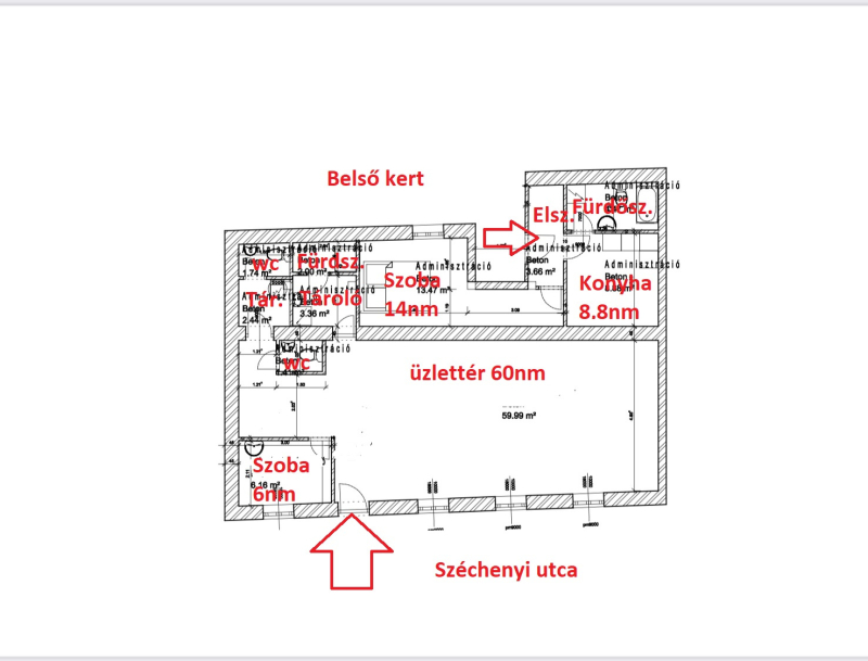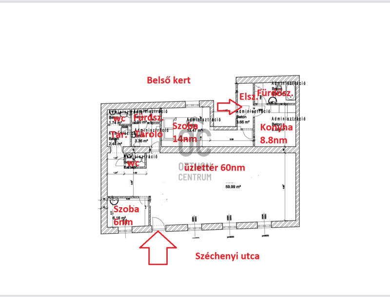 Tulajdonlapon 4 szobás ingatlan, amit a tulaj az alaprajzon látható módon átalakított.