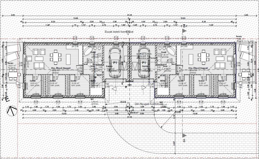 80 m² lakótér + 18 m² fedett terasz + 18 m² garázs.