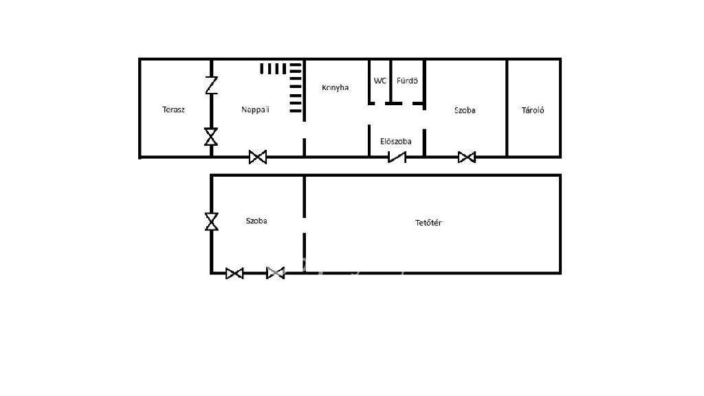 Részben felújított. Lehetőség van a további bővítésre a tetőtérből még egy szoba kialakítható. Az ingatlan osztatlan közös, ügyvédi megosztással.