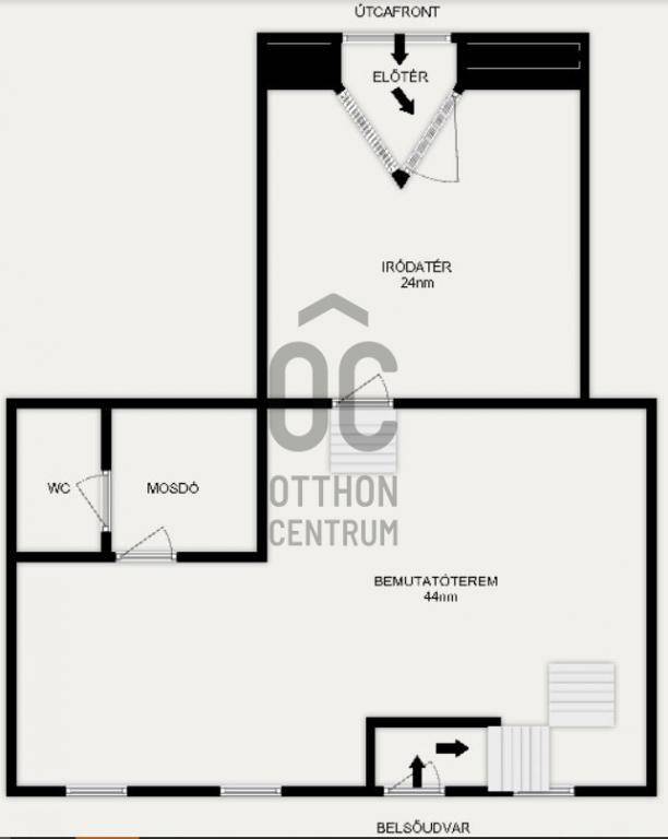 Az ingatlan két nagyobb helységből áll, így elegendő teret biztosít a kreatív munkakörnyezet kialakításához.