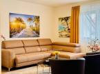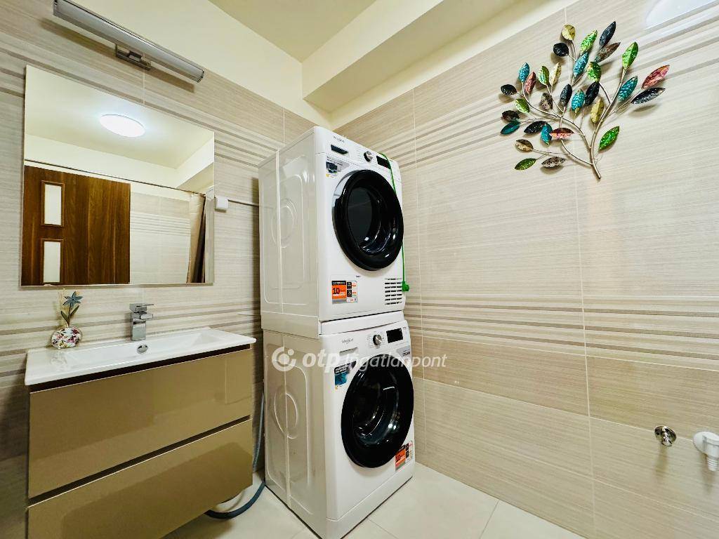 A lakás magas minőségű bútorokkal berendezett, gépesített konyhával, elegáns nappalival és ízlésesen kialakított 3 hálóval rendelkezik. A letisztult belső tér modern dizájnt tükröz, a nagy ablakok pedig természetes fényben fürösztik a helyiségeket.