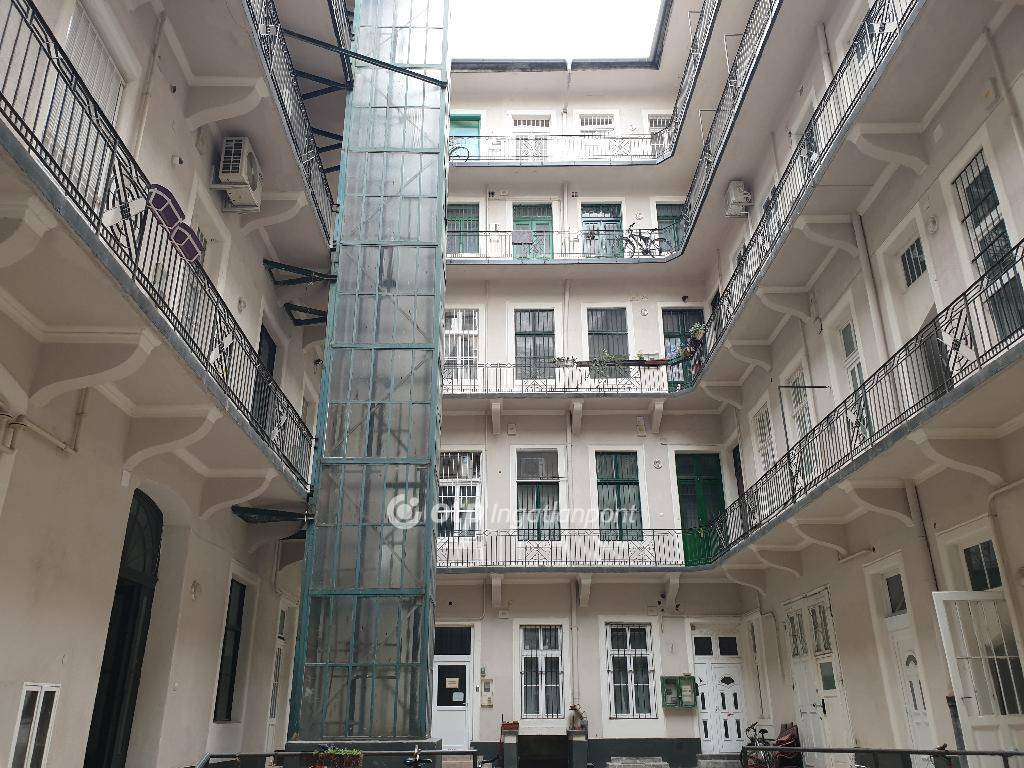 Eladó egy jó állapotú, 73 nm-es lakás a VIII. kerület legkedveltebb részén a Palotanegyedben. A földszinti lakás déli tájolású, ezáltal világos. A nagy belmagasságnak köszönhetően belső kétszintes kialakítást kapott. Az alsó rész 40 nm, ahol az előszobából az amerikai konyhás nappaliba és a fürdőszobába tudunk eljutni, a nappalinak két ablaka nyílik az udvarra. A felső szint 33 nm, itt található egy 12 nm-es szoba és egy 9 nm-es félszoba ezekből szintén kilátás nyílik az udvarra, a két szobát összekötő folyosón van egy beépített gardróbszekrény és a fürdőszoba feletti részen kialakításra került még egy 6 nm-es tárolóhelyiség is. A belmagasság a földszinten 2,75 m, az emeleten 1,9 m.