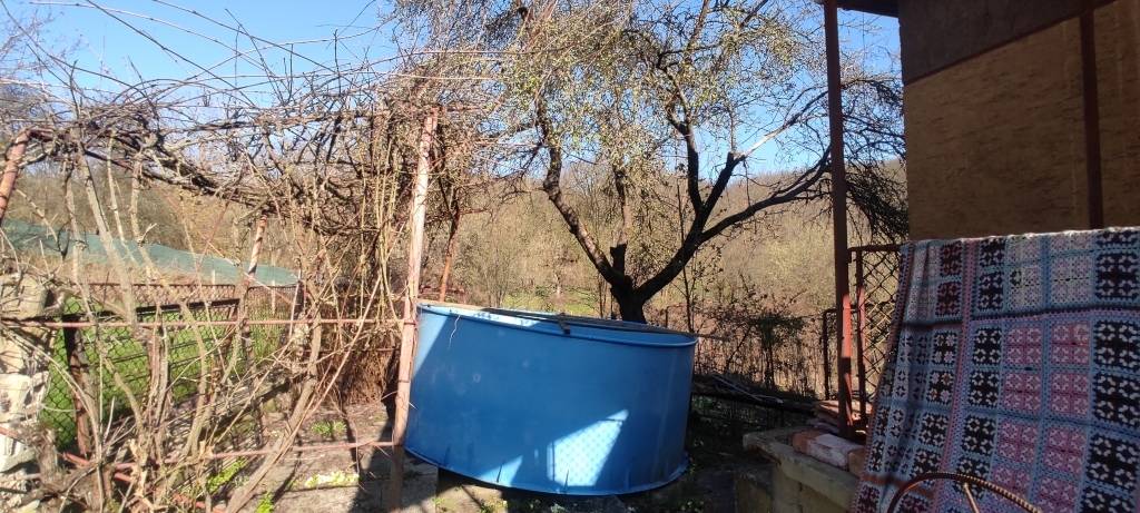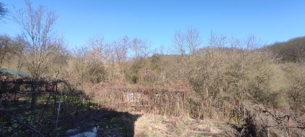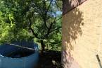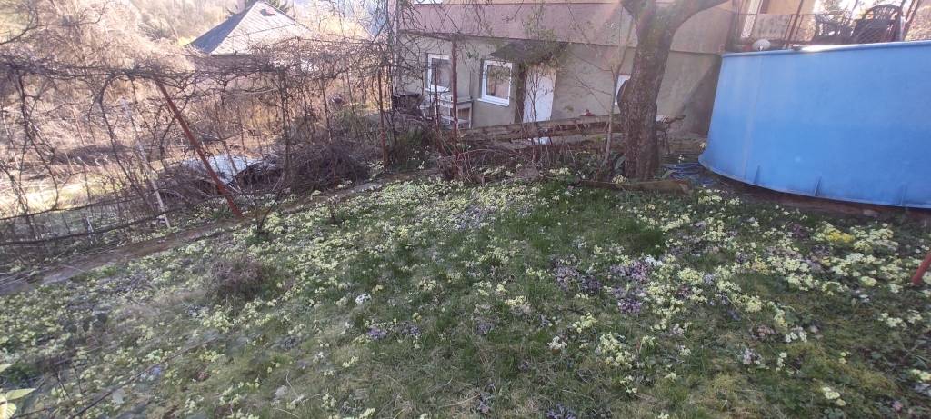 A kert sík, élhető kialakítású, szőlő lugassal, gyümölcsfákkal, vidám kis virágokkal. Telekméret: 855 nm.