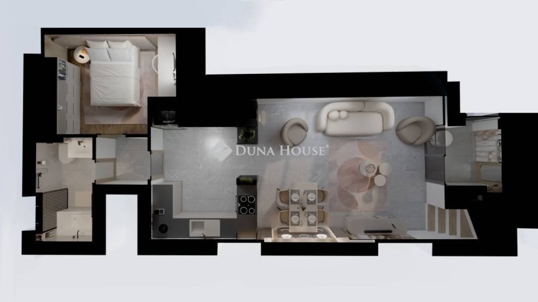 Ez a lakás ideális választás azoknak, akik egy világos, tágas és jól tagolt tetőtéri otthonra vágynak a belváros szívében, ahol a funkcionalitás és a stílus kéz a kézben jár.