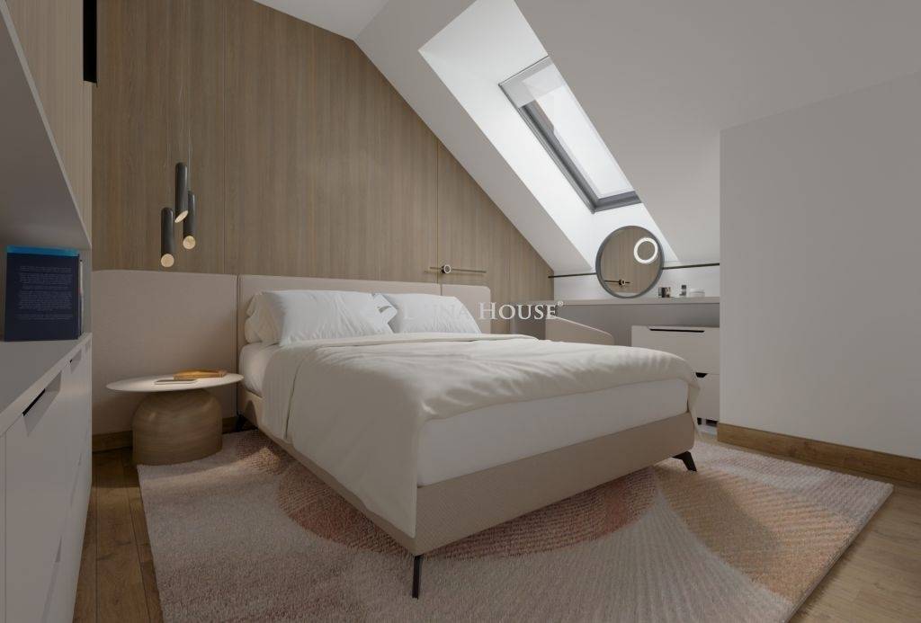 Tetőablakok, amelyek extra világosságot biztosítanak a hálószobákban és a nappaliban.Egyedi belső kialakítás, választható burkolatokkal és berendezéssel, nagy belmagasság, a teljes tetőtér légterével.