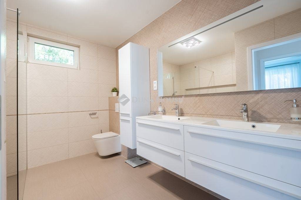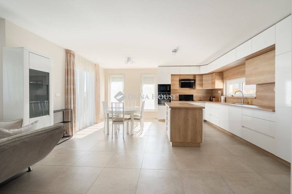 121 m2 alapterületű, világos színek, szép burkolatok, minőségi kivitelezés jellemzi.