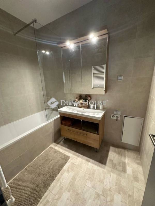 A három hálószoba külön nyíló, csendes és jól szeparált, közülük az egyik saját fürdőszobával rendelkezik. A két fürdőszoba modern burkolatokkal, minőségi szaniterekkel és letisztult dizájnnal készült. A lakásban külön kamra is helyet kapott, ami praktikus tárolási lehetőséget biztosít.