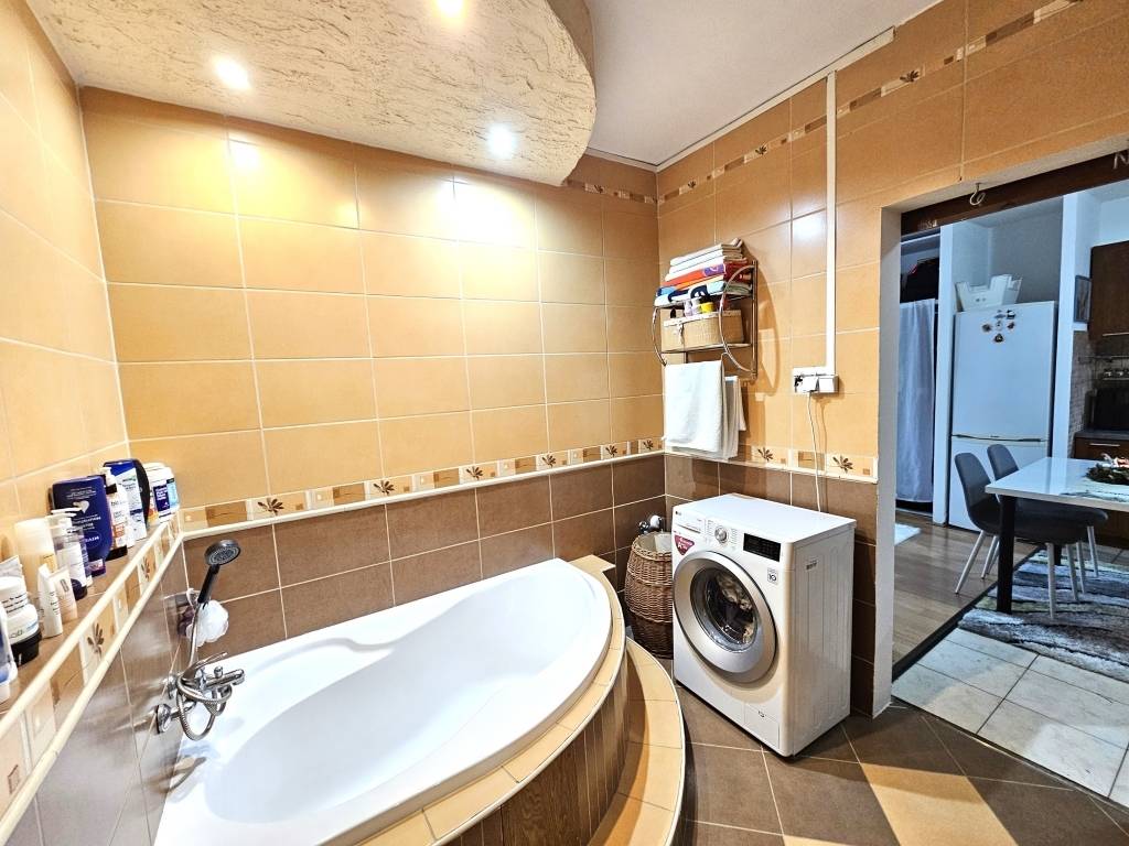 A 1.5 szobás ingatlan biztonsági ajtóval felszerelt, több felújításon is átesett a fürdőszobán keresztül a nappalit bezáróan.