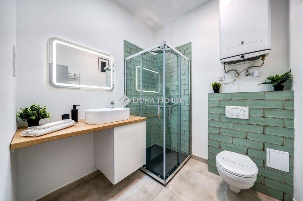 Eladó egy frissen felújított, 73 négyzetméteres, erkélyes, napfényes, légkondicionált duplex lakás Budapest 9. kerületében, a Kálvin tér közvetlen közelében. Az ingatlan 5. emeleten helyezkedik el egy jó állapotban lévő, liftes társasházban. A vételár magában foglalja a gépesített konyhabútort és a teljes berendezést kiegészítőkkel együtt.Az infrastruktúra és közlekedés kiváló. A lakás közelében található villamos, busz, metró megállók néhány perc sétával elérhetőek, így Budapest bármely pontja könnyedén és gyorsan megközelíthető. A környék gazdag kulturális élményeket kínál: számos üzlet, étterem és kávézó található a közelben, amelyek pezsgő városi élettel töltik meg a mindennapokat.A lakás modern stílusú, ahol a funkcionalitásra is nagy hangsúlyt fektettek: az egyik rész amerikai konyhás nappaliból, 1 hálószobából, fürdőszoba + WC-ből, valamint egy tágas előtérből áll. A kisebbik, 18 négyzetméteres ingatlanban konyha, 1 szoba és 1 fürdőszoba kapott helyet, így az ingatlan összesen 2 lakásra van alakítva. Az épület szerkezete tégla, ami hosszú távon is biztosítja az ingatlan értékállóságát.A lakás tökéletes választás lehet azok számára, akik a városközpont közelségét és a kényelmes, modern életstílust keresik. Ha felkeltette érdeklődését az ingatlan, keressen bizalommal további részletekért és megtekintésért!