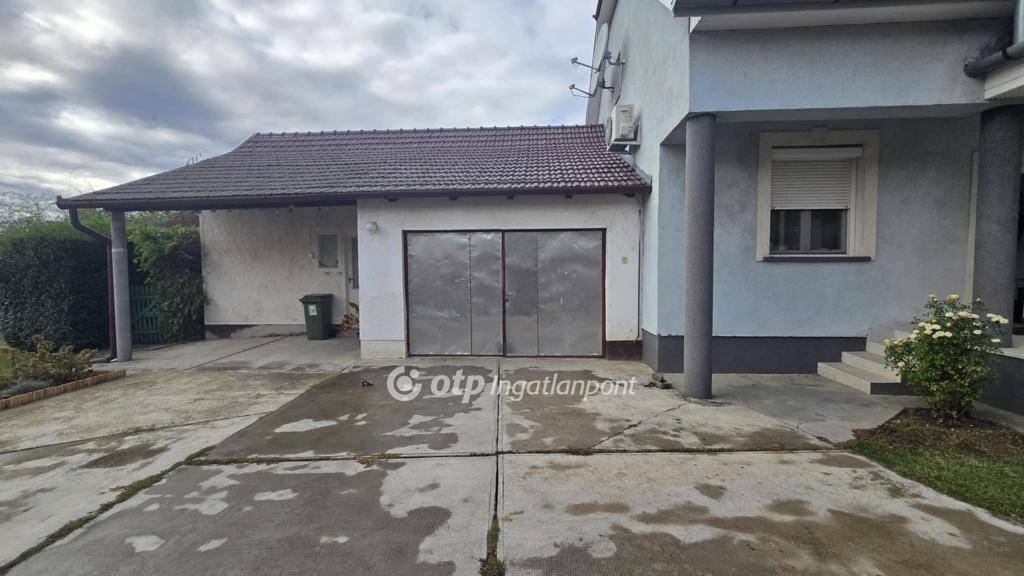 A lakóépülethez közvetlenül csatlakozik alsóépület is, amelyben egy 1 beállásos garázs (sok pakolós polccal és szekrényekkel) és egy tároló helyiség található. Ennek mérete 37 négyzetmétert tesz ki (így jön ki a teljes ingatlan 122 + 37= 159 négyzetméteres nettó alapterülete).