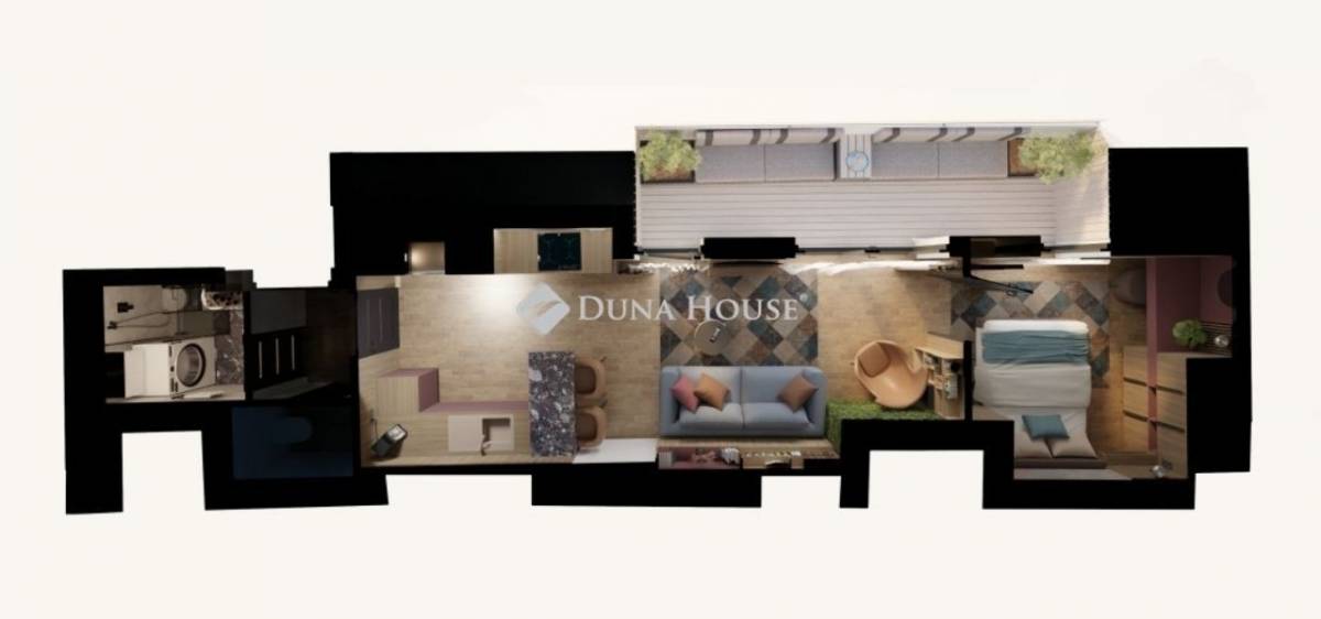 Ez a lakás ideális választás azoknak, akik egy világos, tágas és jól tagolt tetőtéri otthonra vágynak a belváros szívében, ahol a funkcionalitás és a stílus kéz a kézben jár.