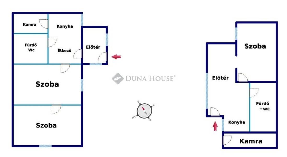 A fő épület nappali+1 szoba, tágas előtérrel, nagyobb méretű konyha-étkező és fürdőszoba kialakítású, a másik házban található egy hálószoba, fürdőszoba és egy kis konyha.