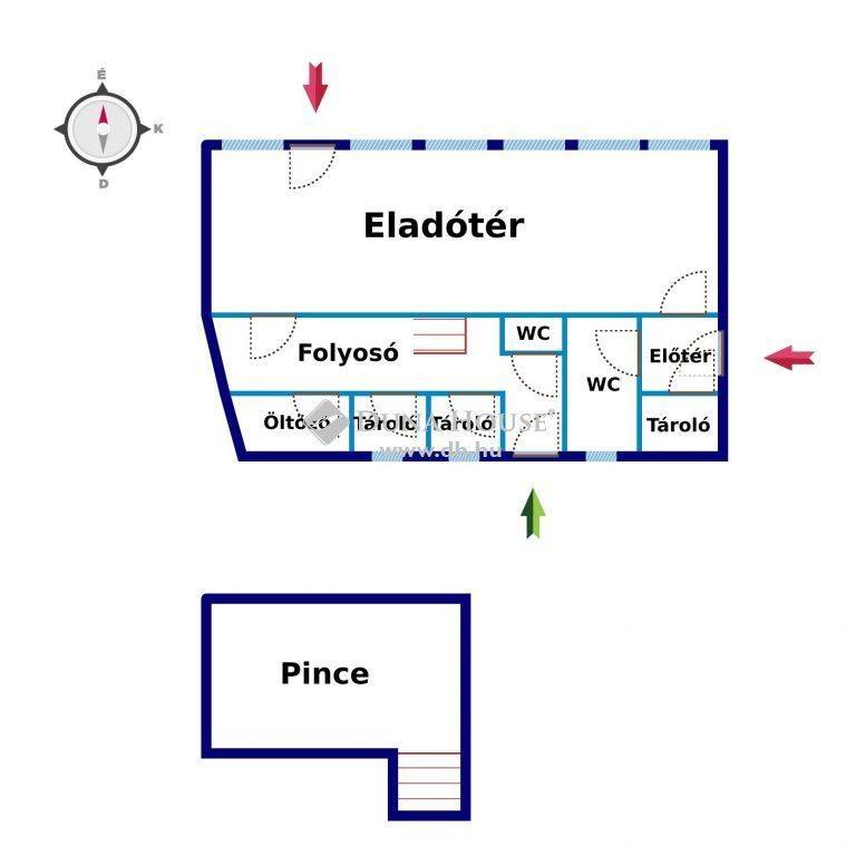 - Italbolt: 85 m2-es, tégla falazatú, melyből 22 m2 pince