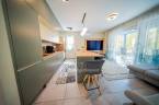 a 27 m2-es amerikai konyhás nappali tágas, világos és közvetlen kapcsolatban áll a 14 m2-es terasszal, ahonnan rálátás nyílik a gondozott kertre.