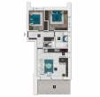 A fürdőszoba 6,1 m2, kiegészítve egy külön WC-vel (1,3 m2), ami növeli a kényelmet. Az előtér 7 m2, elegendő helyet biztosít gardróbnak vagy cipős szekrénynek.