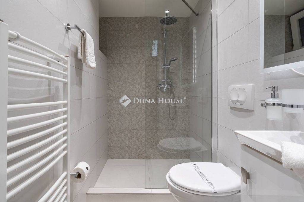 A magas minőségű burkolatok, egyedi beltéri ajtók és modern berendezések elegáns hangulatot teremtenek.