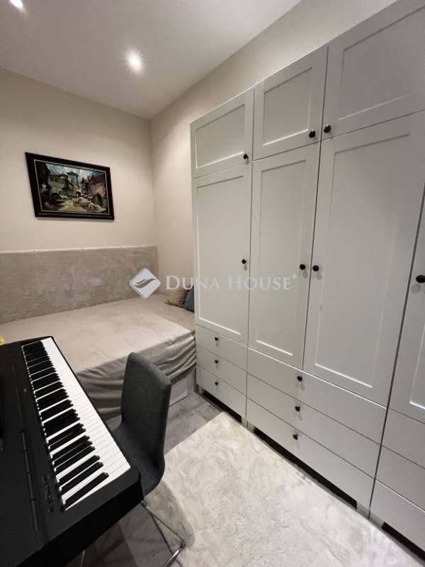 A lakásban egyedi asztalosmunkával készült beépített bútorok, elegáns világítótestek, valamint prémium minőségű beépített gépek (sütő, indukciós főzőlap, 12 személyes mosogatógép, hűtő, mélyhűtő) biztosítják a maximális kényelmet.A komfortot tovább növeli a hűtő-fűtő klíma, amely egész évben kellemes hőérzetet biztosít.
