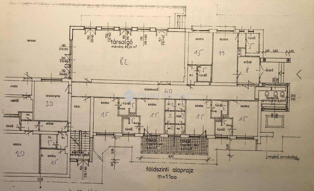 Tetőtér: beépíthető, a közművek felvezetve, a lépcső elkészült, és a tervek is rendelkezésre állnak további 7 szoba kialakítására.