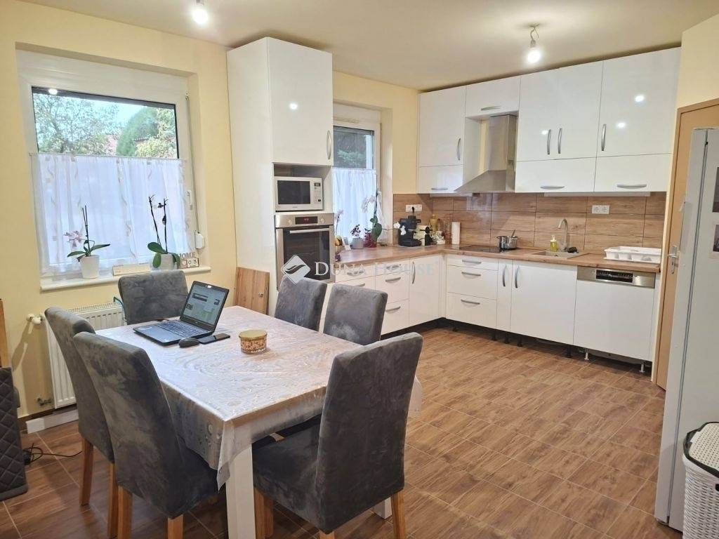 Eladó 2003-ban Porotherm 38 N+F téglából épült kétszintes családiház 25 nm-es fűtött garázzsal. A ház összesen 160 nm nettó. A földszint 85 nm és a tetőtér kb. 100/75 nm.Tetőtér beépítése 1,5 éve kezdődött folyamatban van. Készültségi szint kb 60 %-os. Fűtés, víz, villany előkészitve teljesen.Új Roto R7 műanyag ablakok a tetőtérben, Rehau kétrétegű műanyag ablakok a földszinten redőnnyel és szúnyoghálóval mindkét szinten. A földszint 2,5 éve teljesen fel lett újítva, kivéve a fürdőszobát.Külön két fürdő/WC és egy külön WC a földszinten. Grohe csaptelepekkel.Panasonic 5.3 Kw-os klíma a földszinten.Amerikai konyhás nappali minőségi Bosch beépített gépekkel.Földszinten egy 15 nm-es szoba, a tetőtérben három nagyobb.Mosókonyha/háztartási helyiség és kamraWiessmann 24 Kw-os Gázkazán Radiátoros fűtéssel, a két szint külön termosztáttal ellátott, egyedileg állítható.A melegvizet bojler éjszakai árammal vagy a gázkazán is biztosítja.25 nm-es fedett terasz, közvetlen kapcsolat a kerttelUtp hálózati csatlakozás kiépítve az egész házban.3 X 25 A ipari áram.3 + 8 m3- ciszternába bevezetve az esővíz csatorna.Parkosított, gondozott udvar örökzöldekkel.