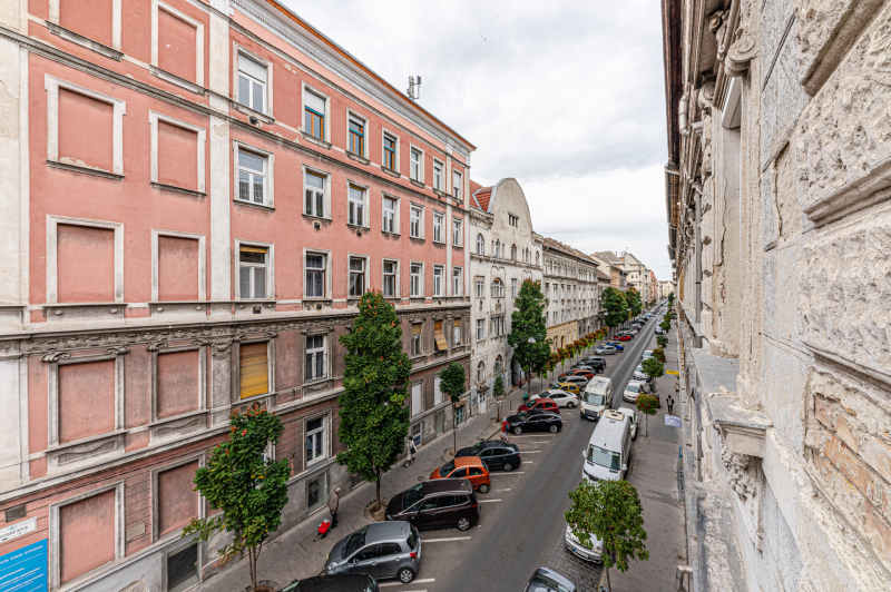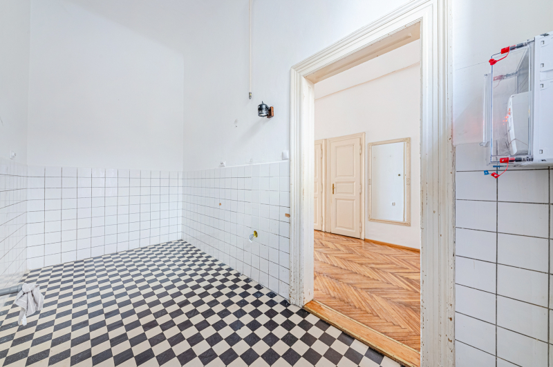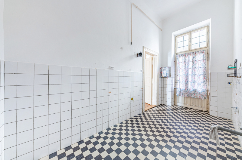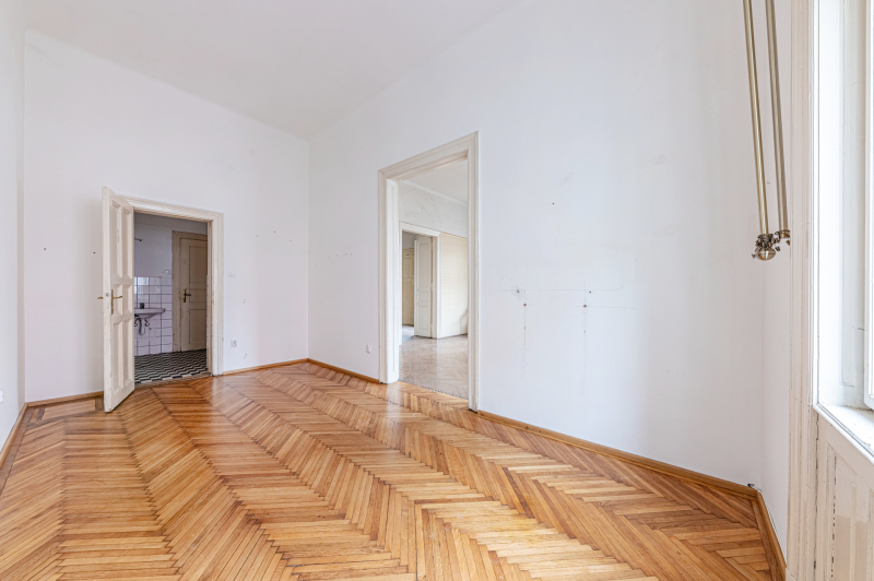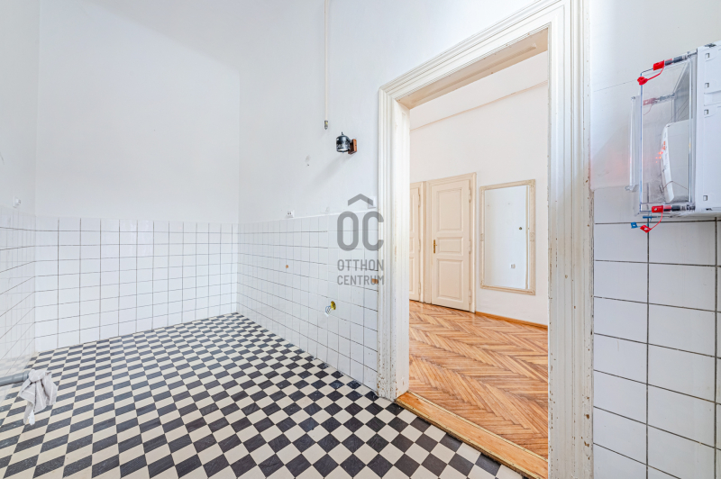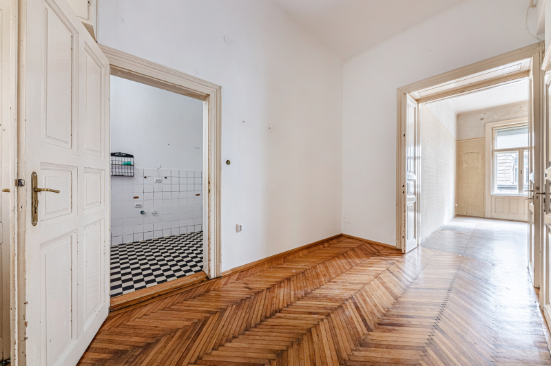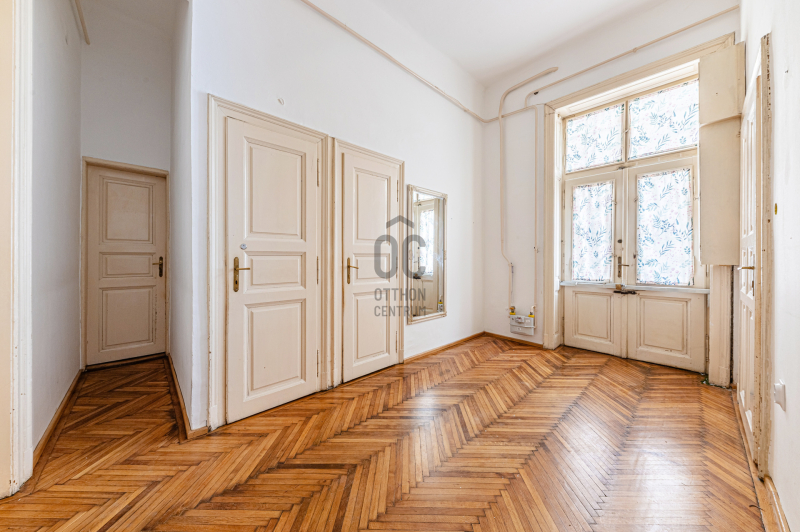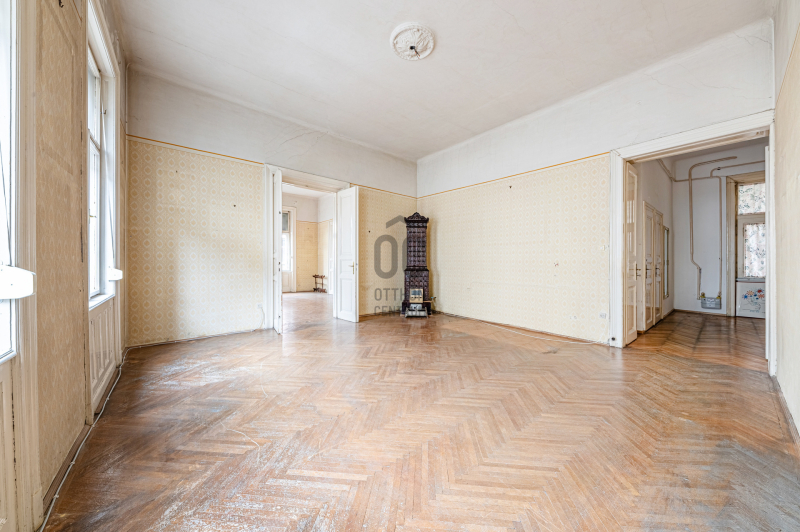 Eladó egy 102 nm-es, nagy belső terekkel rendelkező, világos, dél–nyugati fekvésű lakás rendezett, klasszikus polgári házban.