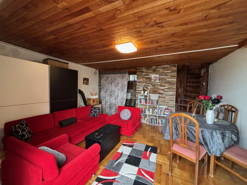 Az 55 m²-es, kétszintes házban nappali, főzőfülke, 1 szoba és fürdőszoba kapott helyet.