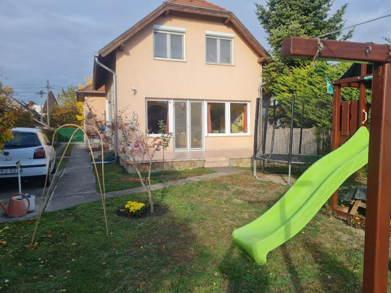 A kert teljesen sík, nagy, a szomszédok rendezettek, kedvesek. A közlekedés kiváló, a busz 5 perc gyalog.