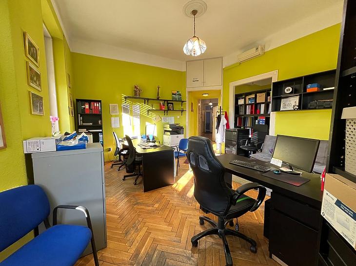 Az ingatlan 5 tágas, különnyíló szobával rendelkezik, jelenleg irodaként funkcionál, de könnyedén visszaalakítható elegáns otthonná, rendelővé vagy akár reprezentatív vállalati központtá is. A lakás közepes állapotú, így lehetőséget kínál arra, hogy az új tulajdonos saját elképzelései szerint újítsa fel, és egy igazán egyedi, értékálló ingatlant hozzon létre.