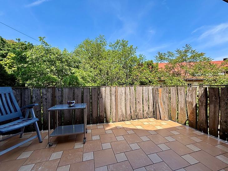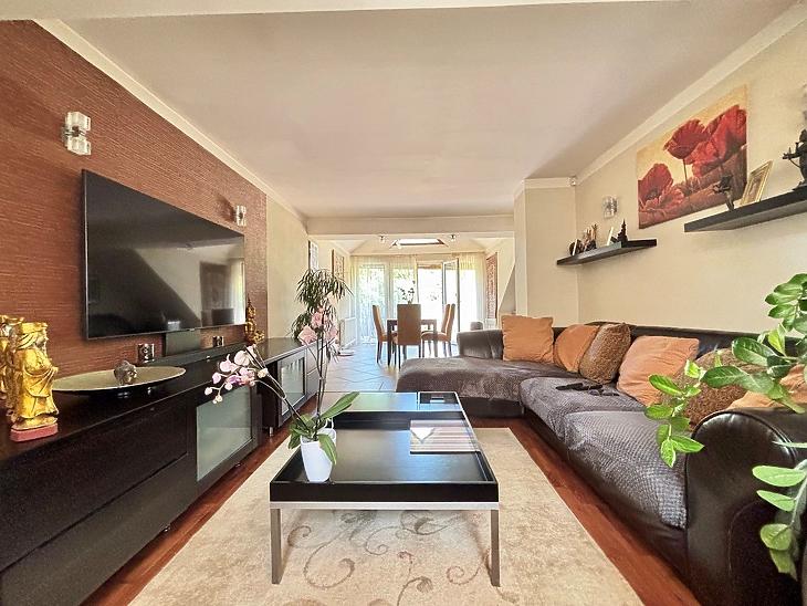 A lakás 3 különnyíló szobával rendelkezik (14, 16 és egy 33 m²-es nappali), utóbbiból közvetlen kijárat nyílik a napfényes, 10 m²-es teraszra. A konyha tágas, kamrával és francia erkéllyel. Külön fürdő, két WC, gardrób, valamint saját padlás és tároló is tartozik hozzá. A hálószobák klimatizáltak, a nappali igény esetén könnyen kettéosztható, így akár egy plusz szoba is kialakítható. A lakáshoz kizárólagos kertkapcsolat is jár.