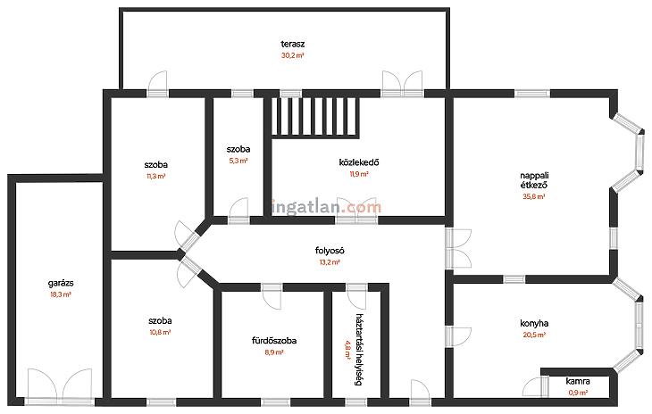 - A ház alapterülete 177,6 nm, a földszint 137,8 nm, a beépített tetőtér pedig 39,8 nm.