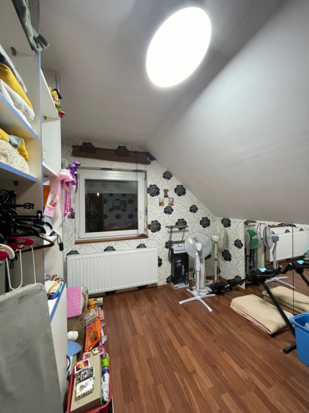 Az emeleti részen 3 szoba található és szintén egy fürdőszoba.