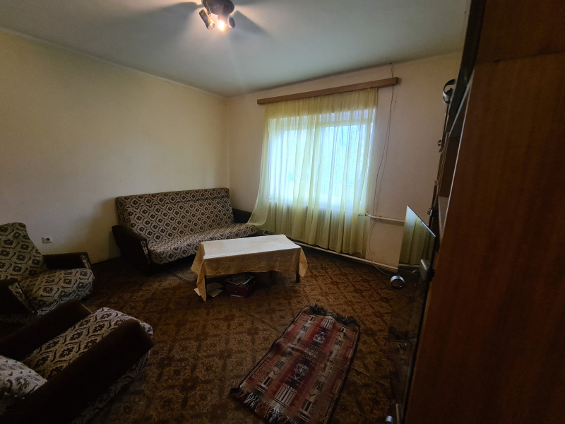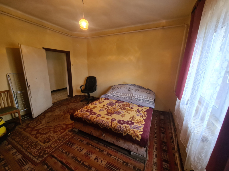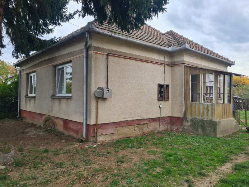 A ház elosztása: két kényelmes szoba, közlekedő, kamra, fürdőszoba-WC egyben, konyha, étkező, és egy szélfogó rész.